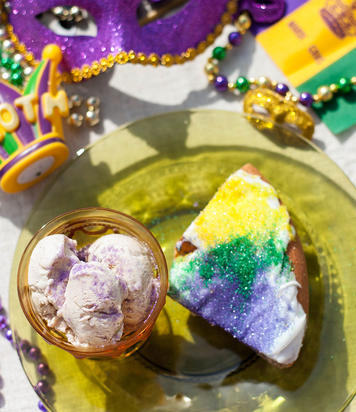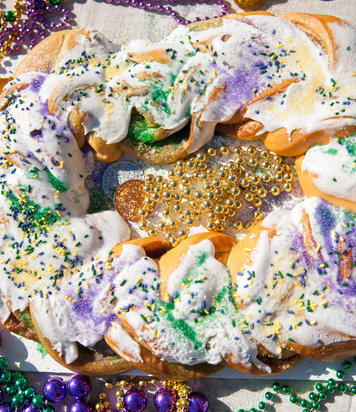 During Carnival in Louisiana, you can find both traditional king cakes and creative riffs on the classic at most bakeries and grocery stores. For specialty cakes, check out Haydel’s Bakery in New Orleans or at Cajun Market Donut Company in Lafayette. Or make your own!